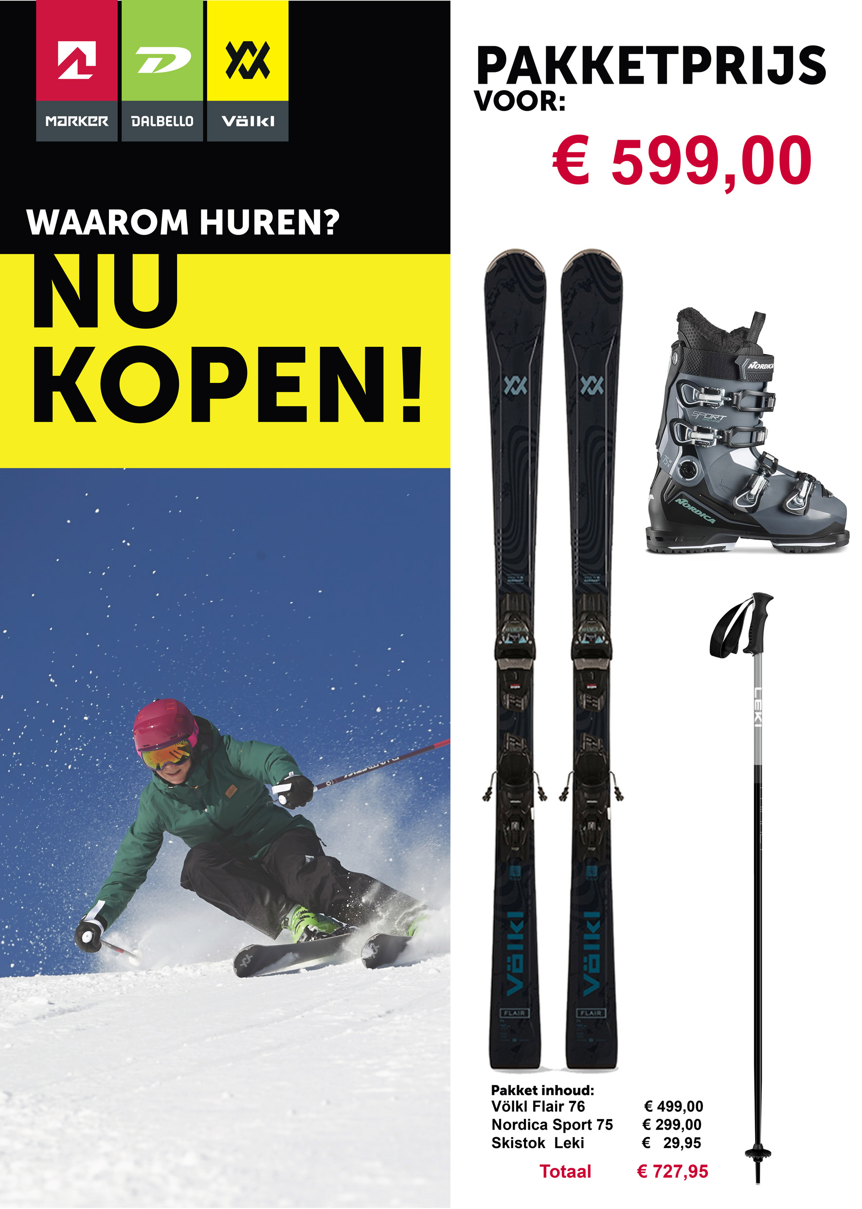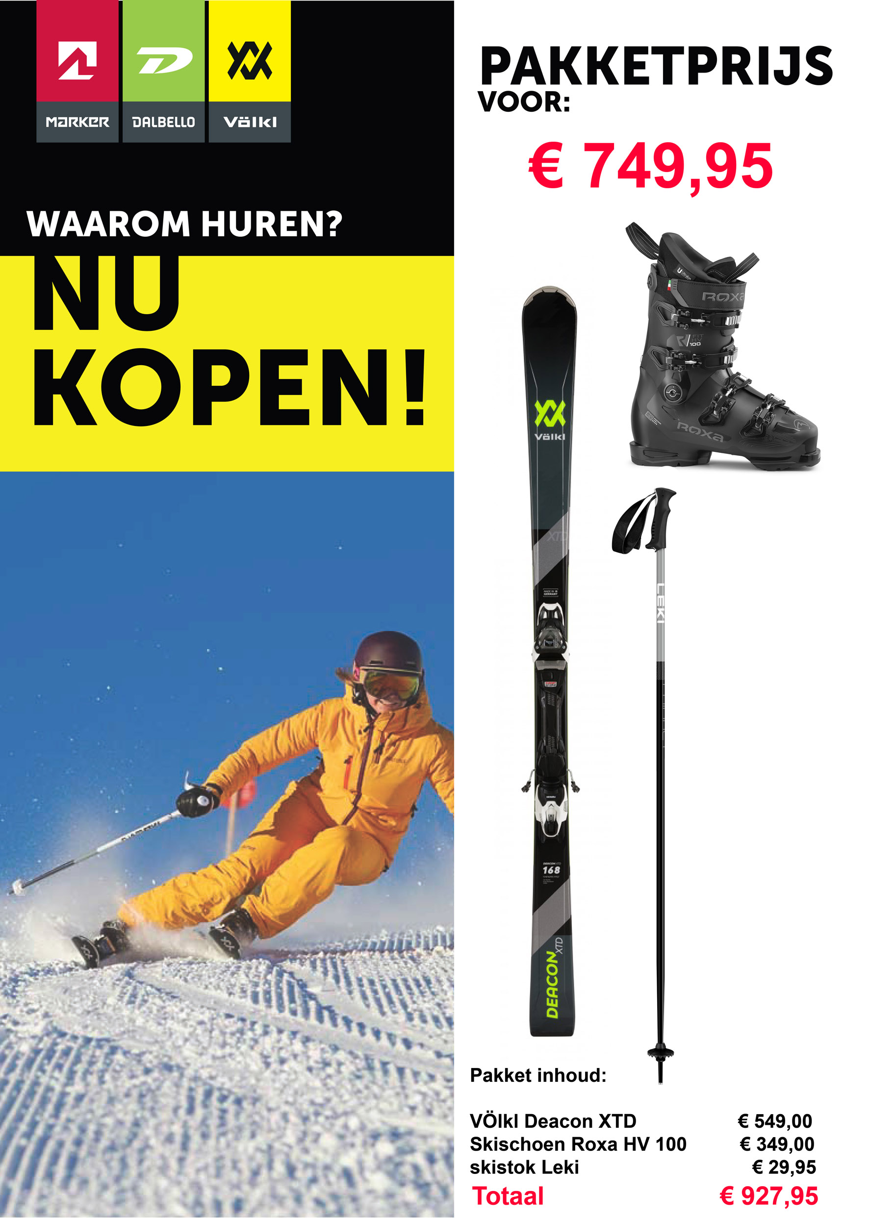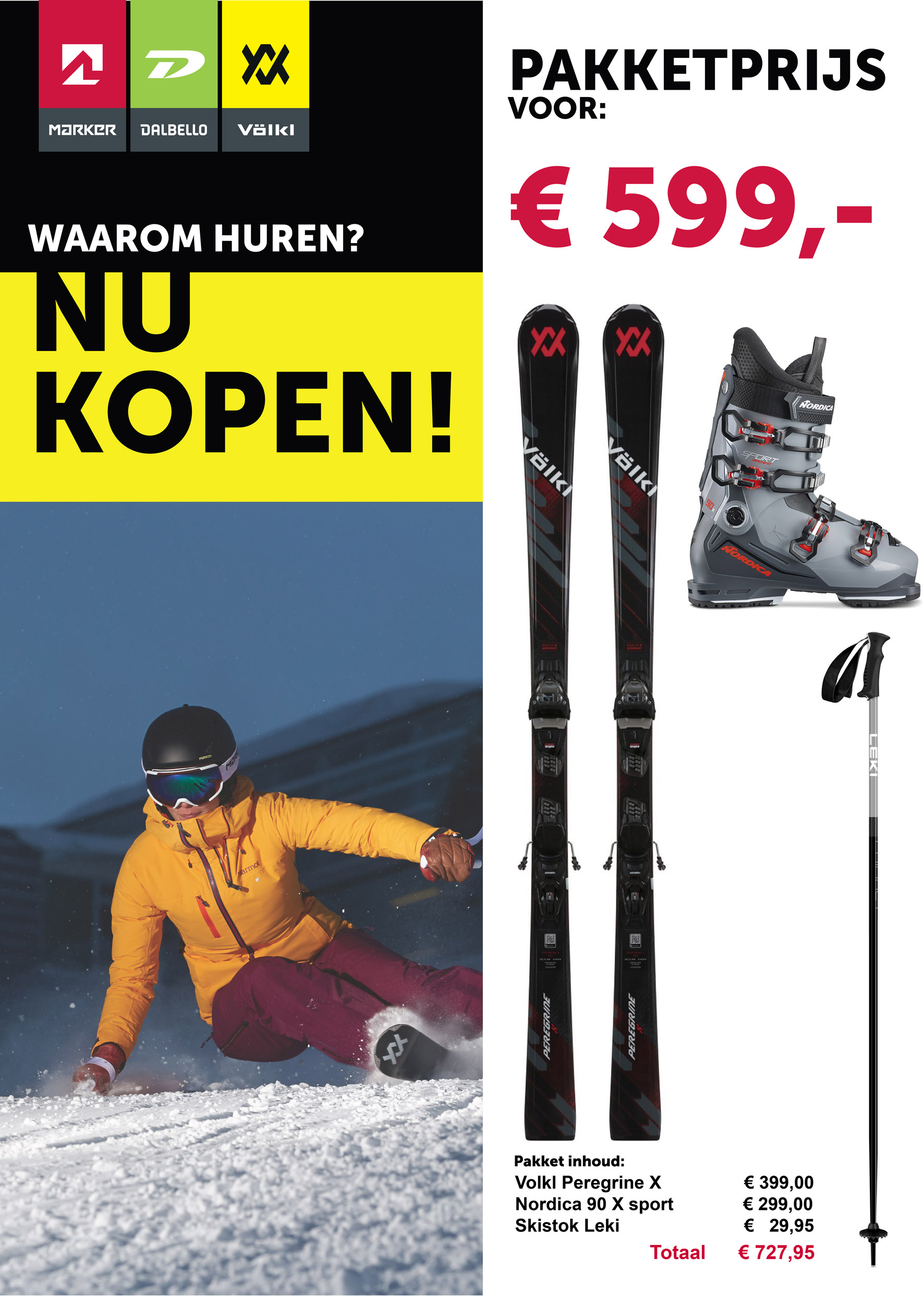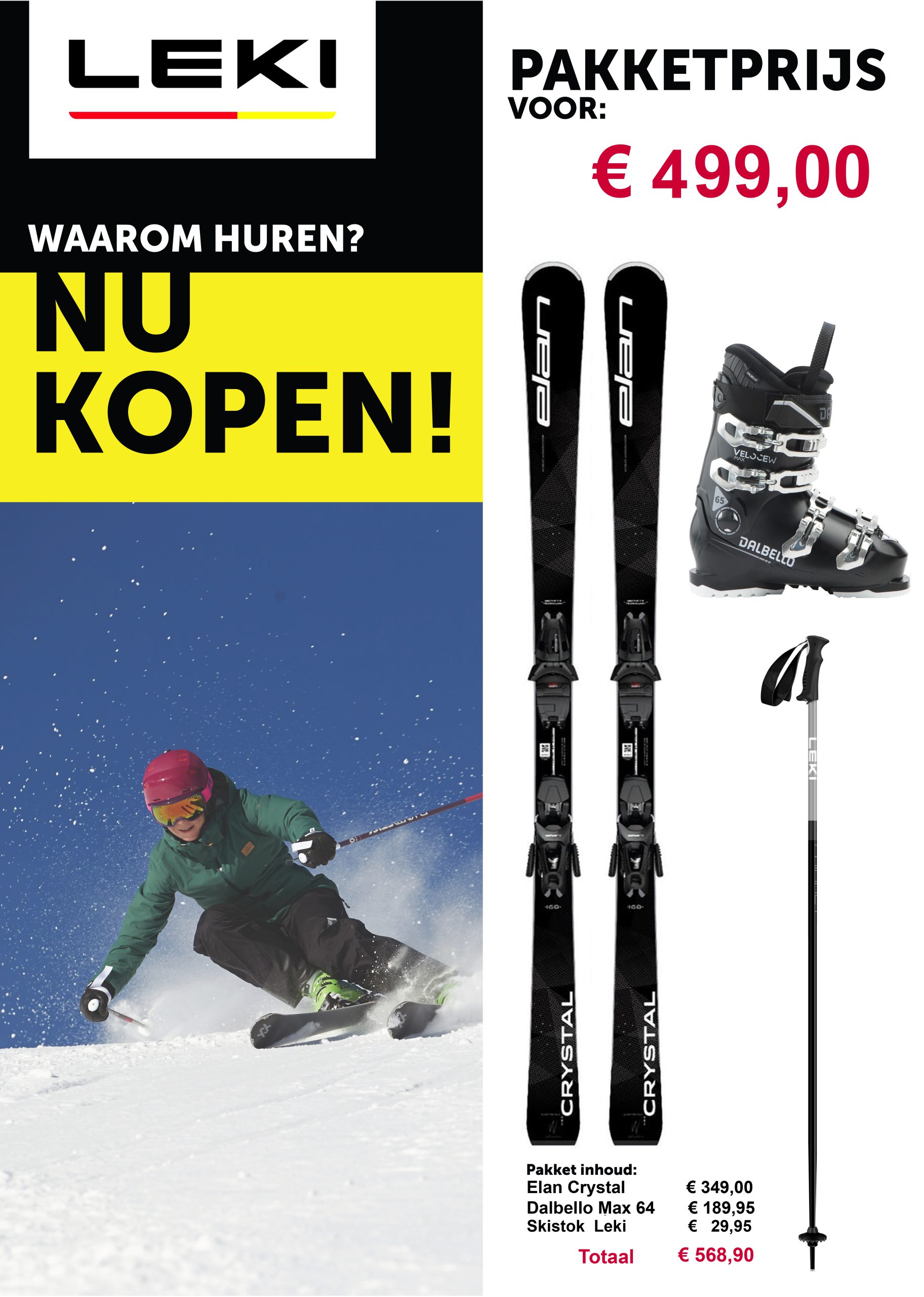 De getoonde ski’s en prijzen zijn slechts voorbeelden. Per model wordt gekeken wat de opties zijn.